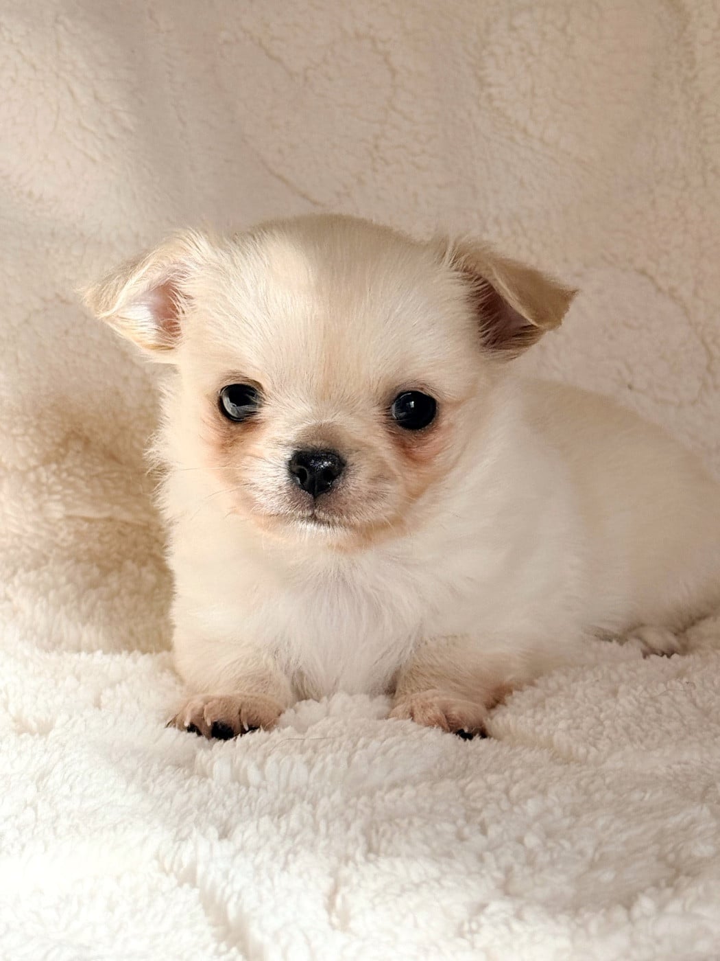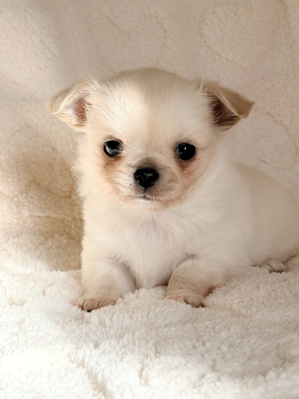 Superbe mâle blanc crème, très bien pigmenté , il a une sublime tête tout en rondeur et est déjà très typé.